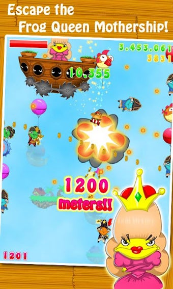 Os sapos malditos saltam do barco da rainha - na prática, um veículo que voa em Pop the Frog. O navio tem uma base cheia de serras giratórias, por isso tome cuidado para não encostar nelas e morrer.